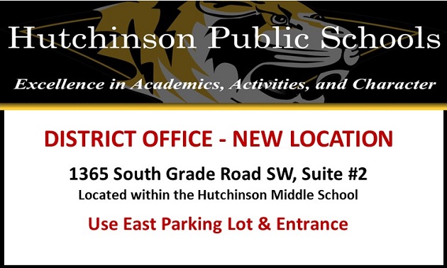 June 5, 2024 by Hutch Tiger (TV) The District Office has a new location at 1365 South Grade Road SW, Suite #2, located within the Hutchinson Middle School. Please use the East parking lot and entrance.